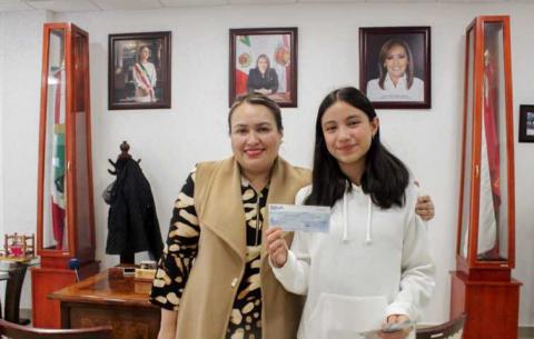 La presidenta municipal de Chiautempan, Blanca Angulo Meneses, continúa apoyando a los jóvenes del municipio. En esta ocasión recibió a Zoé Valencia Vázquez, una chica que practica Taekwondo y que en próximos días representará a Tlaxcala en una competencia nacional en Nayarit, a quien le otorgó un estímulo económico para ayudarla a solventar gastos y necesidades.