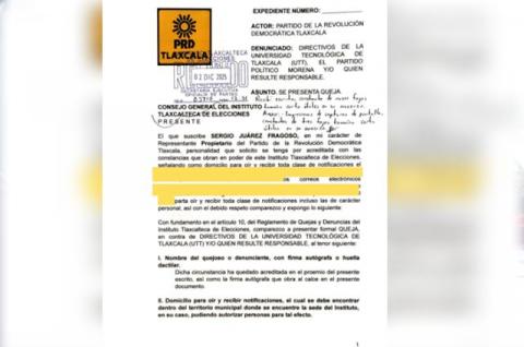 El Partido de la Revolución Democrática Tlaxcala presentó este martes, ante el Instituto Tlaxcalteca de Elecciones, una denuncia formal derivada de los hechos recientemente revelados en la prensa donde da a conocer que en las Universidades Tecnológica de Tlaxcala y Politécnica de Tlaxcala, se han señalado presuntas prácticas de proselitismo político, condicionamiento académico y presión a estudiantes para favorecer a un partido político en funciones de gobierno.