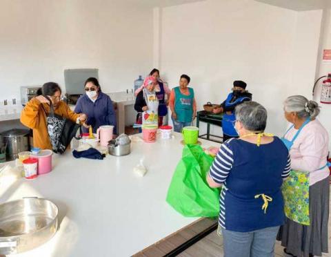 Como parte de estas acciones, madres de familia participan en cursos de capacitación para la elaboración de productos que les permiten emprender proyectos productivos. De igual manera, se brinda atención y acompañamiento a adultos mayores en las distintas comunidades, favoreciendo su integración y convivencia.