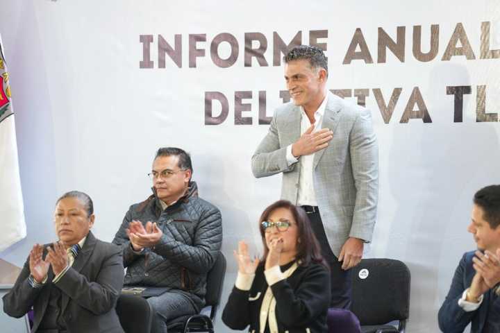 Durante este informe, la gobernadora Lorena Cuéllar Cisneros hizo un reconocimiento al trabajo conjunto de las instancias estatales y federales que han llevado a Tlaxcala a ser el estado más seguro del país.