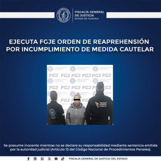 En un trabajo coordinado, elementos de la Policía de Investigación de ambas corporaciones detuvieron a la imputada en la colonia Centro, donde le informaron los derechos que le asisten como persona detenida. Posteriormente, fue trasladada a Tlaxcala, donde continuará su proceso legal.