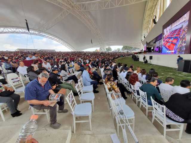 En fin, después de la perorata informativa, cuando apenas había culminado de informar el cuarto de 10 ejes de su gobierno y pese a las amenazas de los descuentos vía nómina, cientos y posteriormente, miles de los asistentes comenzaron a dejar hablando sola a la gobernadora para retirarse del lugar, situación que la obligó a tener que omitir algunos ejes y emitir un breve mensaje de cierre, ante la posibilidad de que se quedara hablando sola, pues hasta en la zona “fifi”, algunos de sus funcionarios comenzaron a retirarse del lugar.
