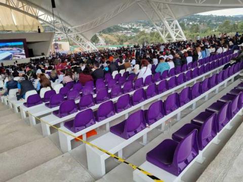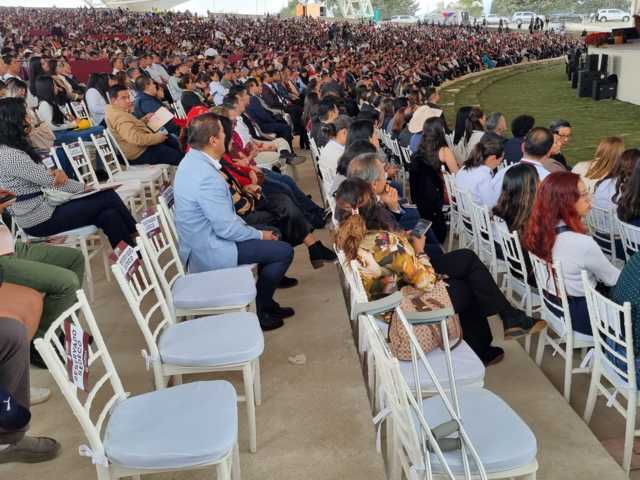 Los más de siete mil burócratas, entre los trabajadores del gobierno del estado y los de los 60 ayuntamientos que tuvieron que pasar lista junto con sus familiares y permanecer el mayor tiempo sentados para evitar que les apliquen descuentos vía nómina, optaron por ponerse a dormir, revisar su Facebook o amenizar entre ellos, mientras la mandataria más votada hacía alarde de sus supuestos logros.