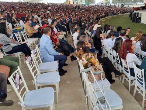 En educación, una vez más, habló de la creación de nuevas universidades, pese a tratarse de iniciativas del gobierno federal, de la entrega de uniformes gratuitos a 57 mil estudiantes aunque la ley la obliga para todos, hasta de la dignificación del magisterio, a pesar de que la Sepe-Uset se ha convertido en una fábrica de pobres debido a que miles de docentes llevan años con cinco, 10 o 15 horas frente a grupo con salarios miseros y la nula posibilidad de crecer, debido a los concursos amañados de la Sepe-Uset.