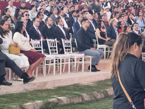 De entrada, los únicos personajes de peso político que arribaron a su informe, fueron los exgobernadores Beatriz Paredes Rangel, Héctor Ortiz Ortiz y José Antonio Álvarez Lima, de ahí párele de contar, pues todos los demás fueron los representantes del representante de los secretarios de Estado, incluyendo a la esposa del exgobernador Alfonso Sánchez Anaya y también se hizo el aparecido el Secretario de Finanzas del Estado de México, Oscar Flores Jiménez; ya con una hora de retraso, llego el gobernador de Puebla, Alejandro Armenta.