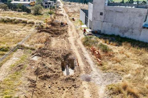 Los trabajos realizados en esta comunidad incluyen el tendido de tubería, así como parte de las labores de relleno y compactación. De igual forma, iniciaron las excavaciones para la instalación de descargas sanitarias, las cuales avanzan conforme a la programación establecida.