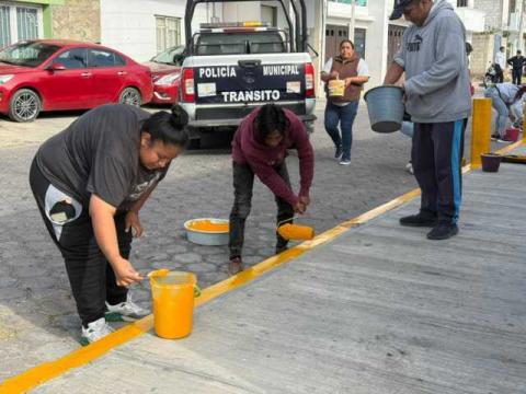 A través del área de Vialidad, el Gobierno Municipal de Papalotla puso en marcha el programa de cultura vial "Primero el Peatón" con el pintado de guarniciones y zonas peatonales en colaboración con la Escuela Primaria Fray Julián Garcés y el Comité de Padres de Familia.