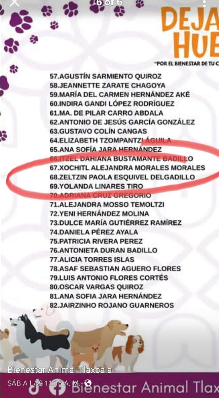 La inconformidad se basó en el registro de personas que actualmente son servidoras públicas, lo que ha generado acusaciones de conflicto de interés y uso indebido de recursos. Entre los casos señalados destaca el de Zeltzin Paola Esquivel Delgadillo, excoordinadora municipal de Bienestar Animal en La Magdalena Tlatelulco y ahora integrada al ayuntamiento de Tlaxcala, quien figura dentro de los beneficiarios.