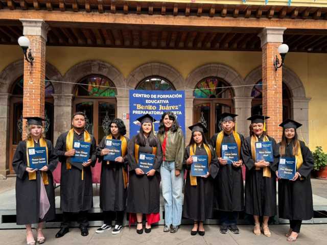 En el marco de la Graduación de la Segunda Generación del Centro de Formación Educativa “Benito Juárez” – Preparatoria Abierta, Diana Torrejón compartió su alegría con las personas asistentes a ese acto.