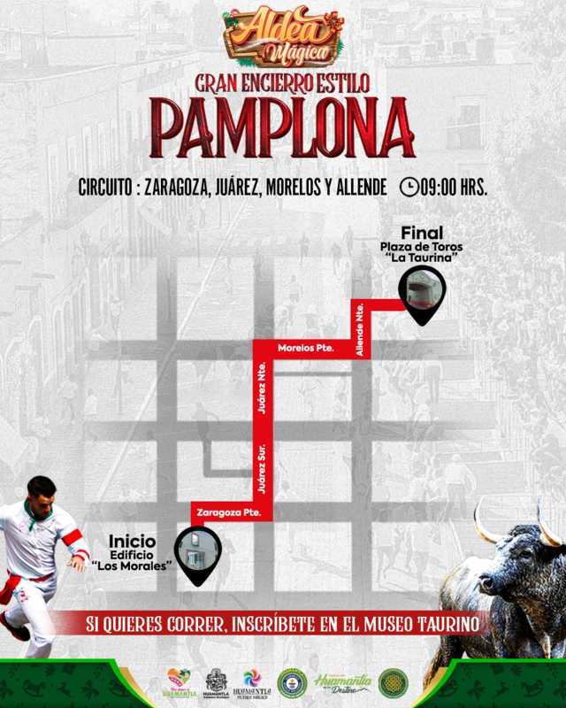 El encierro iniciará a las 9:00 de la mañana, recorriendo las calles Zaragoza, Juárez, Morelos y Allende, circuito que se encuentra debidamente señalado en el mapa oficial que se adjunta para conocimiento de la ciudadanía.