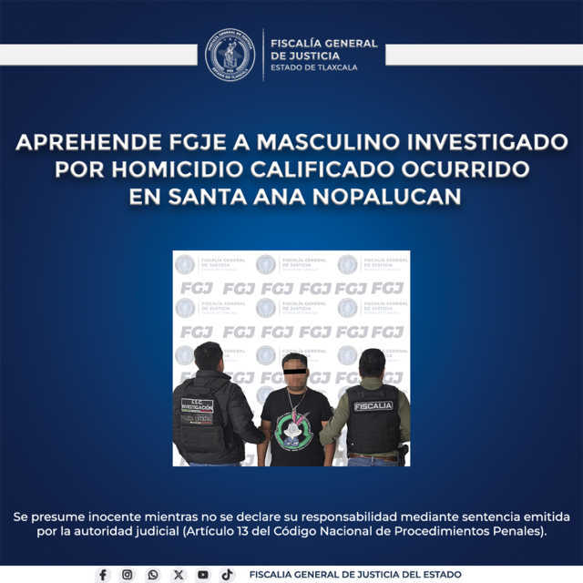 Derivado de ello, agentes de Investigación realizaron labores de inteligencia y análisis de información, logrando ubicar a Eloy N. en la comunidad de Acuitlapilco, municipio de Tlaxcala, donde le hicieron saber los derechos que le asisten como persona detenida y el motivo de su aprehensión.