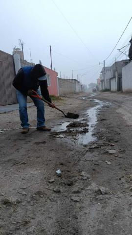 Asimismo, se efectúan trabajos de colocación de adoquines en calle San Luis, como parte del seguimiento a las intervenciones realizadas previamente en la red de agua potable, asegurando con ello la correcta rehabilitación de la vialidad.