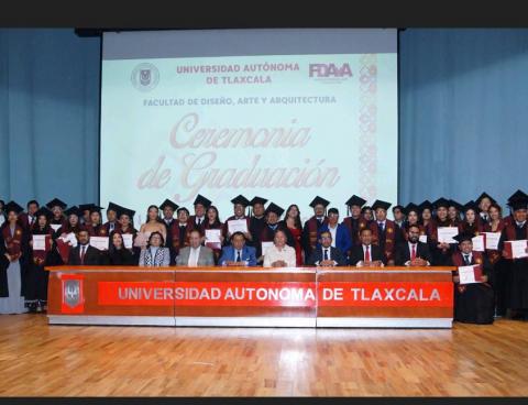 Desde la Universidad Autónoma de Tlaxcala (UATx) respondemos a las necesidades sociales, porque además de formar a nuestros estudiantes también trazamos rutas de vida, conscientes de que la profesión que eligen será parte de ellos para siempre, aseguró el Rector, Doctor Serafín Ortiz Ortiz, al presidir la ceremonia de graduación de 128 profesionistas de la Facultad de Diseño, Arte y Arquitectura (FDAyA), celebrada en el Teatro Universitario.