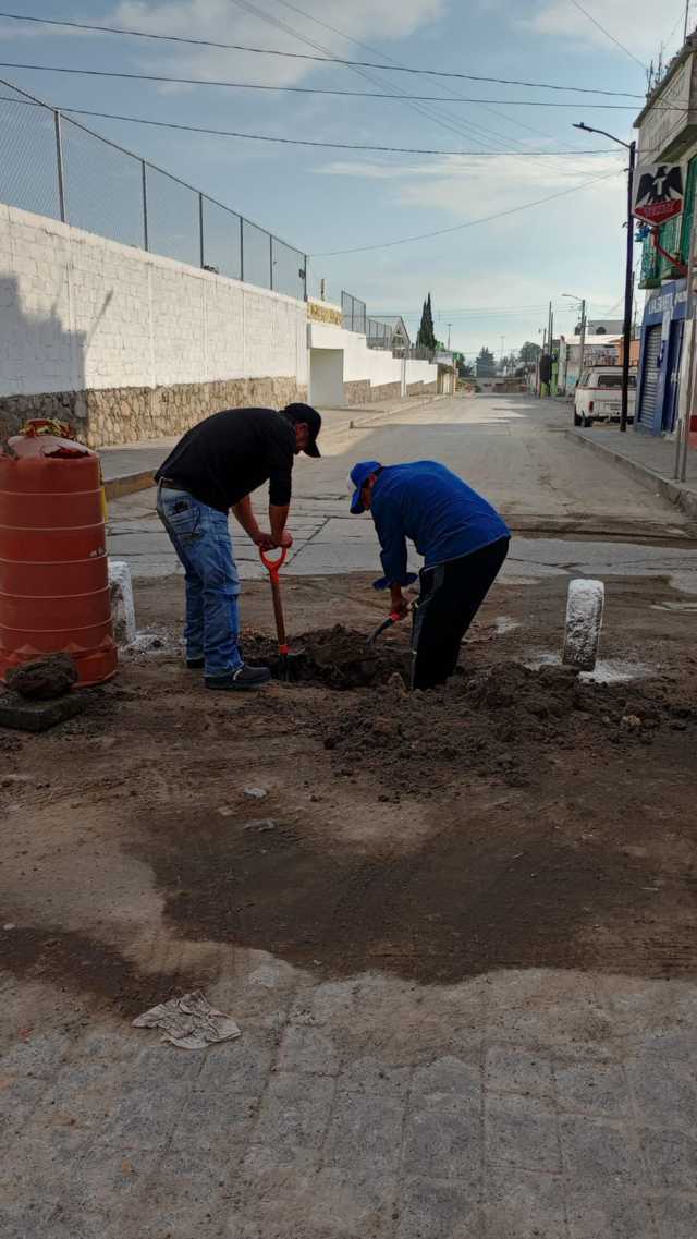Como parte de estos trabajos, se realizan reparaciones de fugas en las calles Aldama y Narciso Mendoza, así como en calle del Convento y calle Guerrero, acciones que permiten mejorar el funcionamiento de la infraestructura hidráulica y garantizar un servicio más eficiente para las y los usuarios.