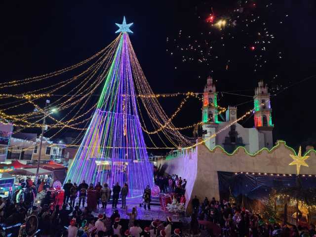Al concluir el desfile, el corazón de Contla se iluminó con el encendido del árbol navideño monumental en la plaza principal, acompañado por la vibrante música de la marching band. Familias enteras aprovecharon la oportunidad para tomarse fotografías en el set decorado especialmente para la ocasión y disfrutar de actividades como la “acostadita” y la emotiva presentación de la Sonata a la Luz de la Luna.