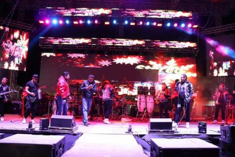 El escenario vibró con las presentaciones de destacados grupos estelares, comenzando con el dinamismo del ., seguido por la energía de ., más tarde, .. mantuvieron encendido el ánimo del público, antes de que .y, finalmente, .cerraran con broche de oro una noche inolvidable.
