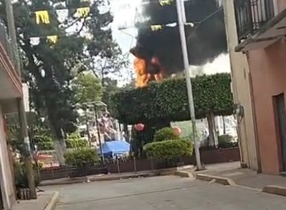 No da una el alcalde "borrachín" de San Cosme Mazatecochco, Emilio González Cortés, quien a base de mentiras e improvisaciones ha gobernado el municipio de San Cosme Mazatecochco y muestra de ello, es que hace unos minutos un corto circuito y el sobre calentamiento de los cables que mantenían la corriente eléctrica para mantener encendido el Árbol de Navidad, no aguantó y género que se incendiara por completo.