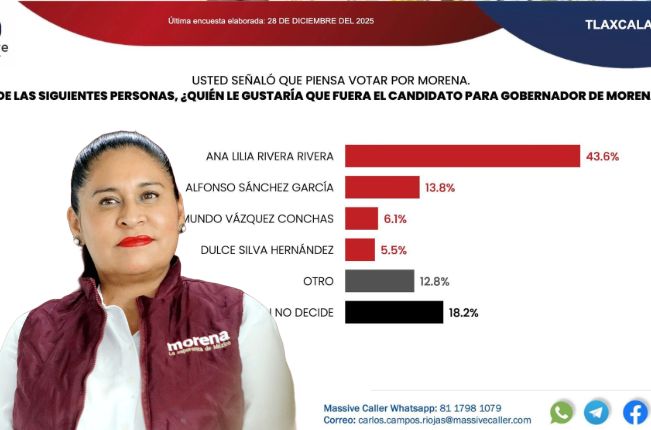 De cara a la elección para gobernador en Tlaxcala, el escenario político comienza a definirse con claridad: Morena no solo lidera la intención del voto, sino que también cuenta con la figura mejor posicionada rumbo a la candidatura, de acuerdo con una encuesta masiva reciente.