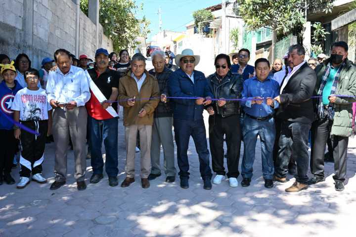 Posteriormente, el Presidente Municipal se trasladó a San Cristóbal Oxtotlapango, donde se realizaron trabajos de demolición, construcción y rehabilitación de un espacio público; en la comunidad de Tizostoc, se inauguró la construcción de pavimento de adocreto en la calle "Puebla", con una meta de 1,200 m², que incluye trabajos de demolición, terracerías, colocación de base hidráulica y renivelación de pozos, garantizando vialidades más seguras y funcionales.