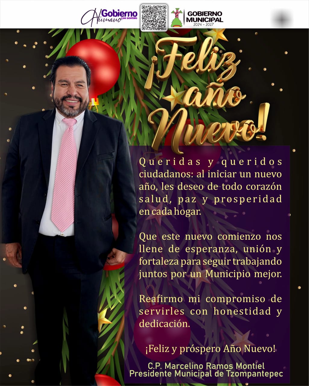 Que el año que inicia nos encuentre unidos, con esperanza renovada y con la firme determinación de seguir construyendo un municipio más justo, próspero y solidario.