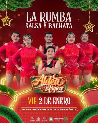 Este viernes 2 de enero, el escenario de la Aldea Mágica, ubicado en el Parque Juárez, será sede de una tarde llena de ritmo y talento. A las 17:00 horas se presentará Miguel Ángel Gutiérrez, y posteriormente, a las 18:00 horas, el público podrá disfrutar de la energía del grupo La Rumba, Salsa y Bachata.