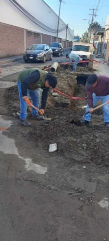 De forma adicional, se trabaja en la reparación de una fuga de agua en calle 5 de Mayo, en la zona de San Lucas, y se atiende un reporte de posible fuga en calle Ricardo Flores Magón, también en San Lucas, a fin de descartar afectaciones y brindar atención oportuna.