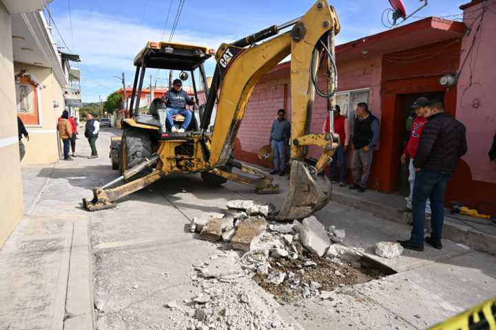 La construcción del drenaje sanitario, que contempla 88 metros lineales, beneficiará directamente a los vecinos de la zona, trabajos que incluyen la demolición de 124.32 metros cuadrados de pavimento de concreto, construcción de dos pozos de visita, conexión de 12 descargas domésticas, así como la construcción de 124.32 metros cuadrados de pavimento de concreto