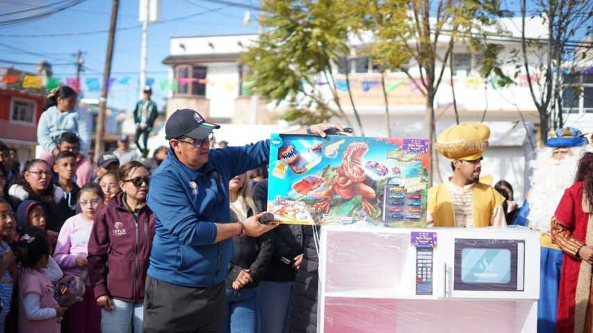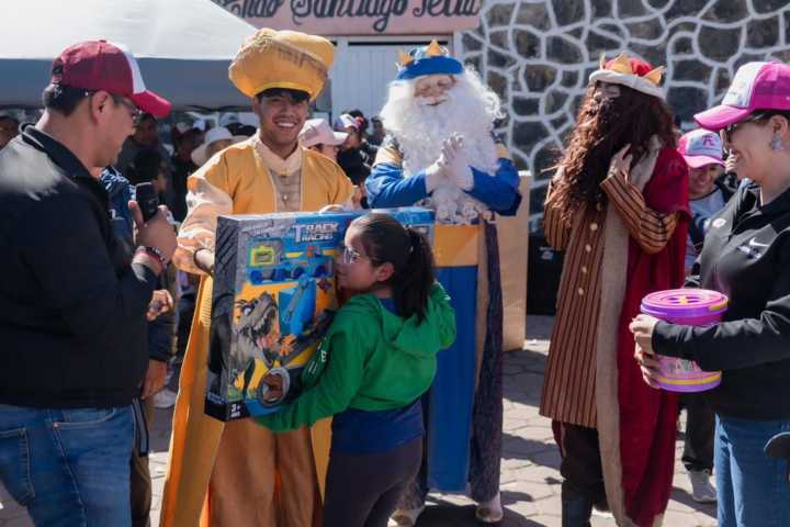 La caravana inició su recorrido en comunidades como *San Isidro Piedras Negras*, donde niñas y niños recibieron juguetes, rosca de Reyes, algodón de azúcar y diversas sorpresas. Posteriormente, la magia continuó en *Agrícola de Dolores*, *José María Morelos y Pavón*, *Santa Fé La Troje*, *Capulac* y *Plan de Ayala*, donde se vivieron jornadas llenas de alegría, shows infantiles, regalos y momentos de sana convivencia.