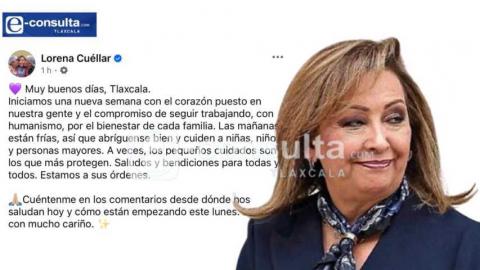 En su publicación matutina, la mandataria habló del frío, del cuidado de niñas, niños y personas mayores, envió “bendiciones” y pidió a la gente que le contara desde dónde la saludaban, simulando cercanía y presencia en la tierra de Xicohténcatl.