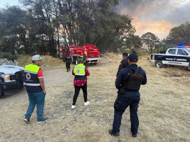 En un trabajo coordinado entre la Policía Municipal y Estatal, Protección Civil de Chiautempan y el Heroico Cuerpo de Bomberos, se logró sofocar oportunamente un incendio registrado en los límites entre las comunidades de Reforma y Texcacoac.