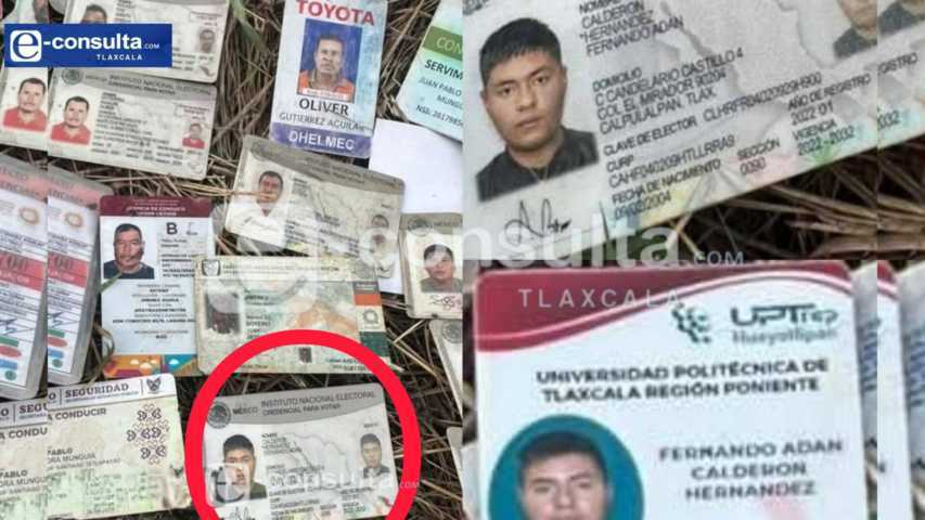 De acuerdo con la información difundida, entre las credenciales encontradas se identifican documentos de estudiantes de la Universidad Politécnica de Tlaxcala, Región Poniente, así como identificaciones de ciudadanos provenientes del municipio de Calpulalpan.