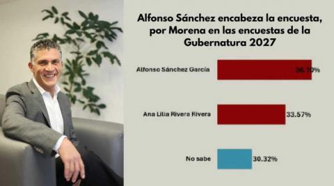 Dentro de Morena, Alfonso Sánchez García, presidente municipal de la capital, encabeza las preferencias con un 36.10 %, colocándose como el aspirante mejor posicionado al interior del partido.