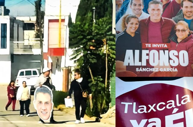 Lejos de un respaldo orgánico, su estrategia desesperada incluye bots en redes sociales, jornadas forzadas de posicionamiento con brigadas dando a conocer a la gente de los municipios la supuesta trayectoria de Alfonso Sánchez García, repleta de falsas afirmaciones, entregando folletos que violan la legislación electoral y van mostrando una fotografía de 1.5 metros con la imagen del alcalde de Tlaxcala.