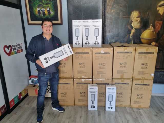 Este día, el presidente municipal de Amaxac de Guerrero, Mauricio Pozos Castañón, hizo entrega al director de Servicios Públicos Municipales, Marco Antonio Pérez Hernández, de 100 nuevas luminarias que habrán de ser instaladas en diferentes calles y avenidas del municipio para avanzar en el proceso de iluminación que durante el ejercicio fiscal de 2025 registró un avance considerable.