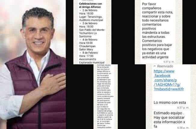 Será una reunión clientelar al más puro método del viejo PRI. Con el cínico respaldo de la gobernadora Lorena Cuéllar, su delfín y "amigo". Alfonso Sánchez García, tiene programadas con la operación de estructuras del gobierno estatal y de Morena Tlaxcal, diversas reuniones electorales disfrazadas de convivencias sociales.