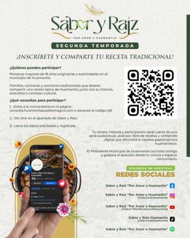 Las y los interesados deberán ingresar a consulta.huamantlapueblomagico.com o escanear el código QR, seleccionar el apartado “Sabor y Raíz”, llenar los datos solicitados y completar su registro.