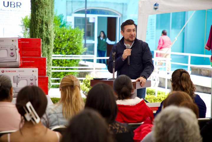 Durante su mensaje, el alcalde destacó que estas máquinas no representan únicamente un apoyo, sino una oportunidad real para emprender y generar ingresos propios, subrayando que cuando se brinda capacitación y herramientas, se construyen bases sólidas para el desarrollo desde los hogares.