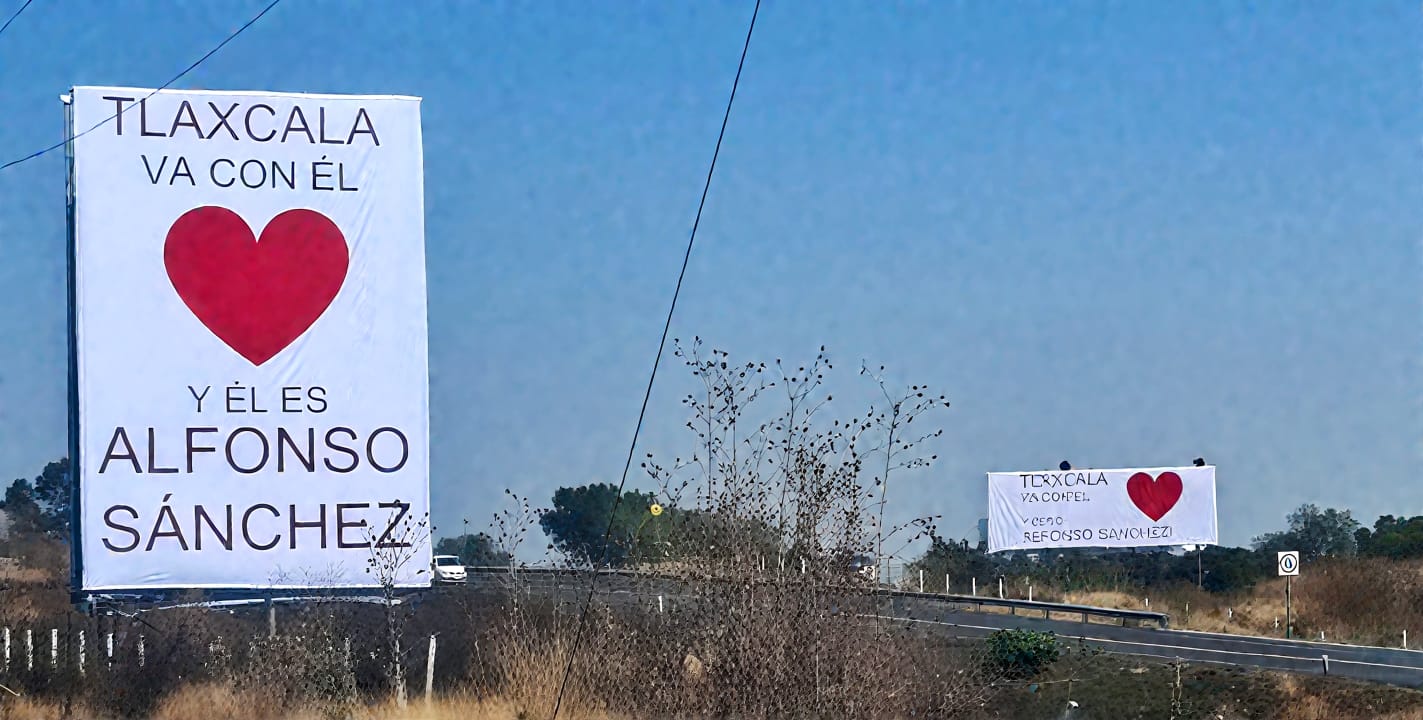 La autopista Tlaxcala-Puebla, una de las vías más transitadas del estado, se ha convertido este domingo en el escenario de una provocación política sin pudor: enormes espectaculares que proclaman a todo color y con corazón incluido: “Tlaxcala va con él y él es Alfonso Sánchez”.
