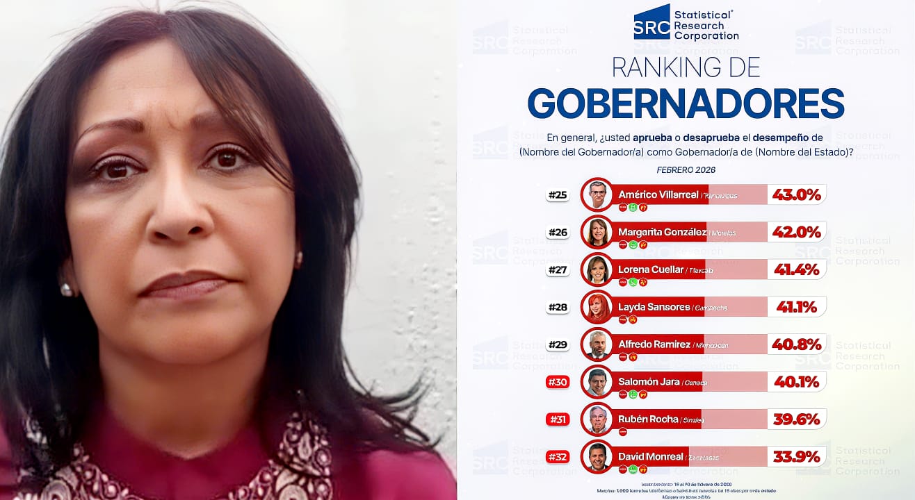 La gobernadora de Tlaxcala se encuentra peligrosamente cerca de los peores evaluados del país. Se codea en el sótano con figuras como Layda Sansores de Campeche (41.1%), Alfredo Ramírez Bedolla de Michoacán (40.8%) y el eterno colero, David Monreal de Zacatecas, quien con un lánguido 33.9% encabeza la lista de los más repudiados. Estar en este selecto grupo de los "reprobados" evidencia que la administración de Cuéllar ha perdido toda brújula social.