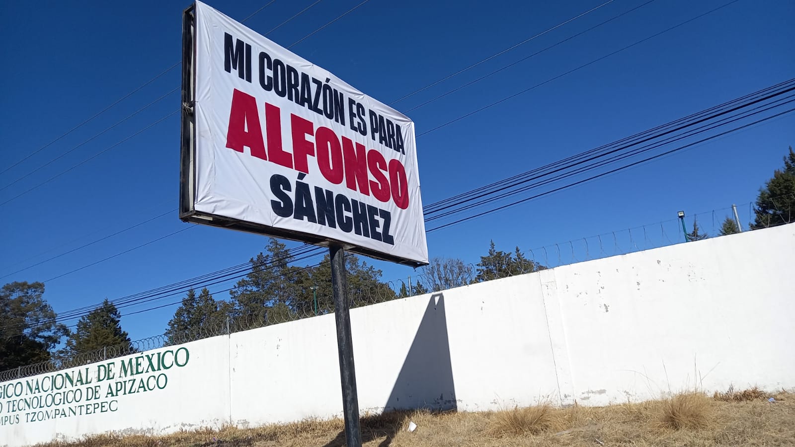 Las imágenes que circulan este fin de semana hablan solas: lonas y espectaculares con frases como “En esta familia estamos con Él” y “Mi corazón es para Alfonso Sánchez” aparecen colgados por brigadas enviadas desde los ayuntamientos locales, encabezados por los alcaldes Diana Torrejón en Tlaxco y Javier Rivera Bonilla en Apizaco.