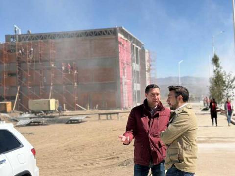 Durante el recorrido, el edil constató los avances del edificio principal, que albergará áreas de networking, comedor industrial y oficinas generales destinadas al personal del parque industrial. Actualmente, la obra presenta un avance aproximado del 90 por ciento, lo que confirma que se encuentra en la recta final para su apertura.