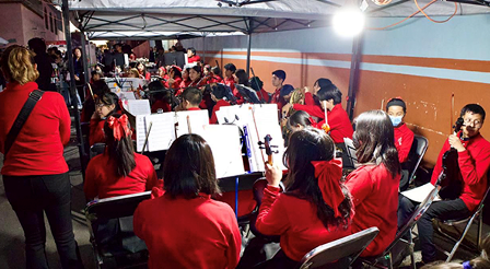 La música de la Orquesta Sinfónica Infantil y Juvenil fue la encargada de amenizar el encuentro, en el que niñas, niños y adolescentes demostraron su talento en la ejecución de diversos instrumentos, llenando el ambiente de entusiasmo y captando la atención de los asistentes.