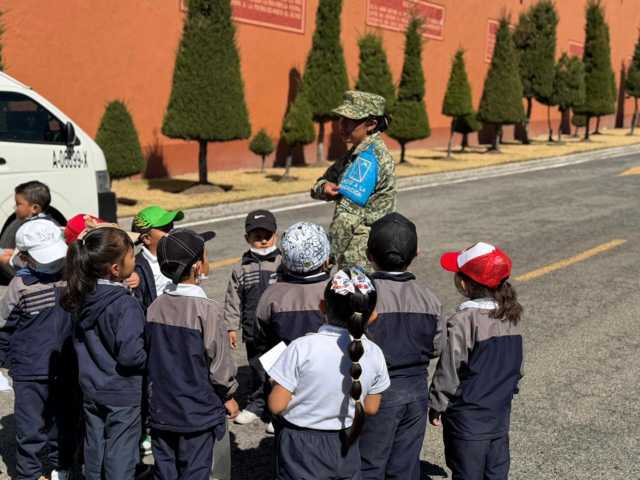 Alumnos del preescolar Juana de Asbaje vivieron la grata experiencia de conocer las instalaciones de la zona militar asentada en la ex Hacienda de Mazaquiahuac en el municipio de Tlaxco, donde niñas y niños reforzaron el sentido de identidad y pertenencia nacional y donde se aplican valores como disciplina, responsabilidad, trabajo en equipo y servicio a la patria.