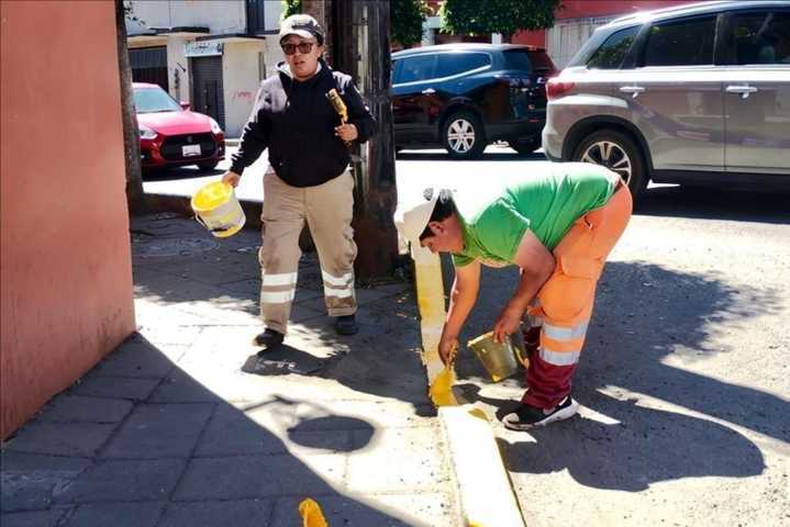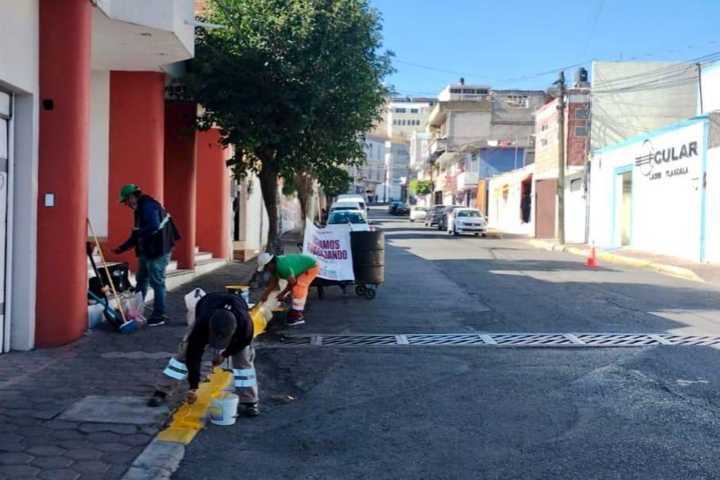 En la colonia Centro se efectuaron labores de colocación de pintura en la calle Hidalgo y avenida Vicente Guerrero; mientras que en Tizatlán se atendió el bacheo en la calle Insurgentes esquina con Educación.
