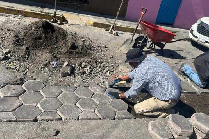 En la comunidad de San Gabriel Cuauhtla se llevó a cabo la nivelación de adoquín en la calle 20 de Noviembre, lo que mejora la movilidad y seguridad de quienes transitan diariamente por la zona.
