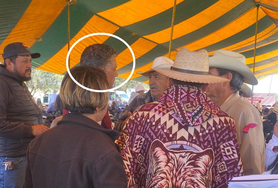 En estos momentos en la entrega de apoyos de la Secretaría de Impulso Agropecuario en el Rancho del Grullo en Tlaxco, Alfonso Sánchez García se hace presente sin tener que estar en el lugar, acompañado por líderes campesinos como los de Tierra y Libertad.