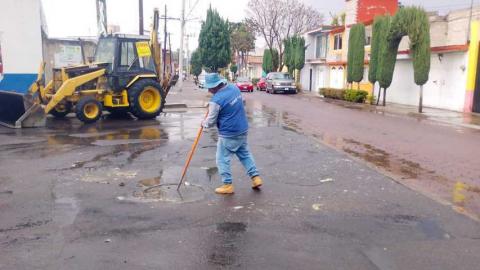 Asimismo, se llevaron a cabo trabajos de drenaje y desazolve en la Barranca 18 de Octubre, con el objetivo de mejorar el flujo del sistema sanitario y prevenir posibles obstrucciones que puedan afectar a las familias de la zona.