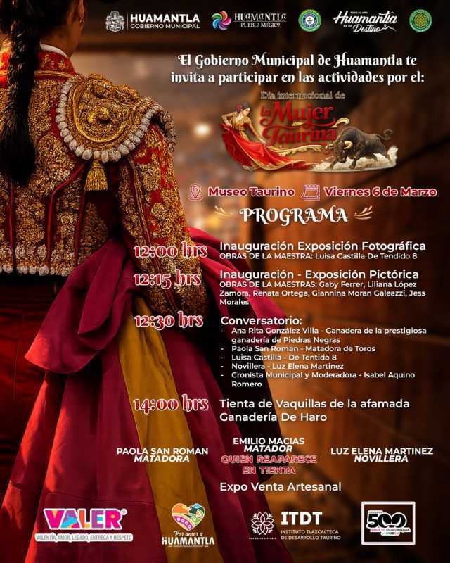Como parte de las actividades conmemorativas del Día Internacional de la Mujer, el Gobierno Municipal de Huamantla llevará a cabo una jornada dedicada a reconocer la participación y trayectoria de las mujeres dentro del ámbito taurino, una de las tradiciones culturales más arraigadas en este Pueblo Mágico.