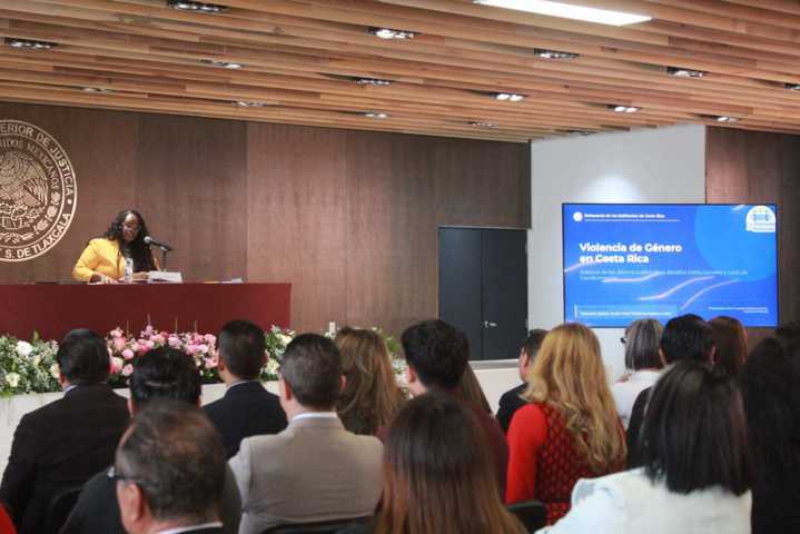 La ponente expuso los avances y retos que enfrenta el gobierno de Costa Rica en materia de la protección y garantía de los derechos de las mujeres, pues si bien reconoció que han avanzado y que este país es referente en el tema a nivel regional e internacional, aún quedan pendientes como en otras partes de América Latina.