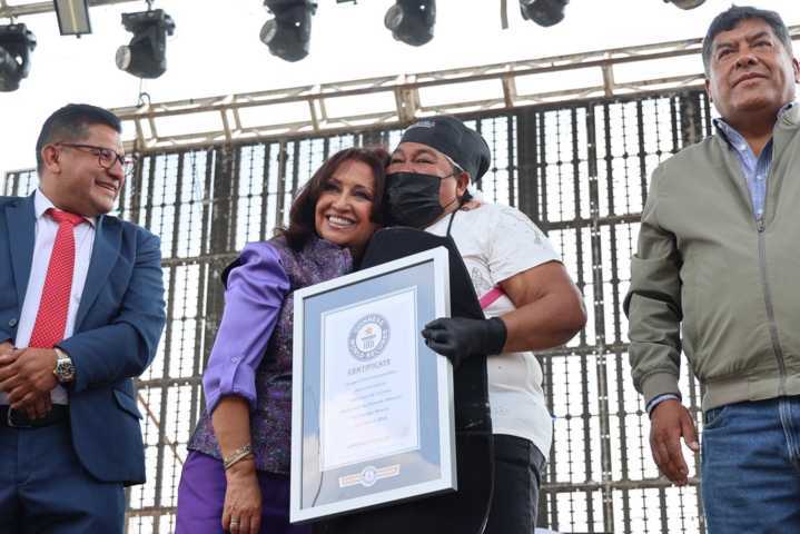 Tlaxcala logró el nuevo título mundial de Récord Guinness por “la línea de quesadillas más grande del mundo”, en el marco de la inauguración de la Feria de la Quesadilla y el Tlacoyo 2026, en Santa Ana Nopalucan, reconocimiento que recibieron la gobernadora Lorena Cuéllar Cisneros y el presidente municipal Pedro Pérez Vázquez de manos de la adjudicadora oficial de Guinness World Records para América, Susana Reyes.